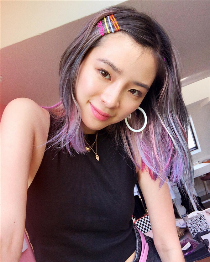 Kestane renkteki saçların arasına atılmış küllü lila bu uygulamaya bayıldık! İnci tokalarla oluşturulan saç modeli ise adeta modern bir deniz kızı görünümüne imza atıyor.